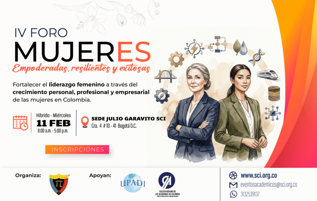 El 11 de febrero la Sociedad Colombiana de Ingenieros estará realizando el IV Foro Mujeres Empoderadas, Resilientes y Exitosas de manera presencial y virtual, informes e inscripciones en la página https://sci.org.co/iv-foro-mujeres-empoderadas-resilientes-y-exitosas/