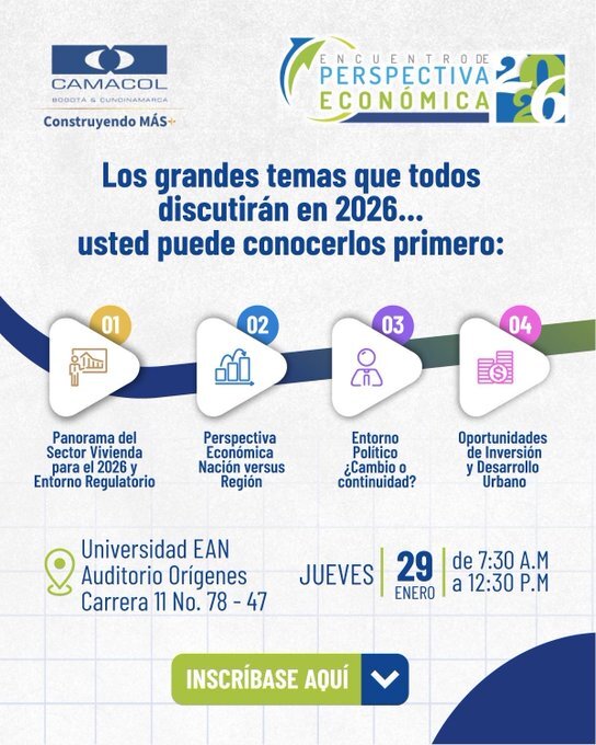 Camacol Bogotá y Cundinamarca realizará el 29 de enero en la Universidad EAN, el Encuentro de Perspectiva Económica en donde se presentarán los movimientos económicos