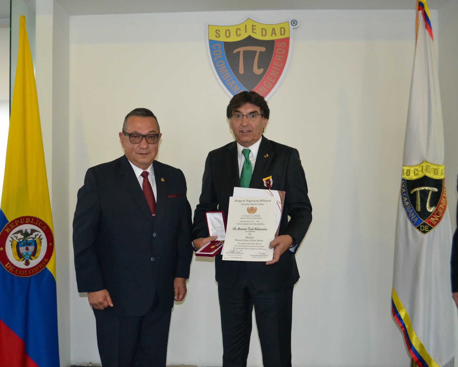 El grupo de ingenieros militares Francisco José de Caldas le concedió al ingeniero Femán Pardo Albarracín, presidente de la Sociedad Colombiana de Ingenieros, la medalla