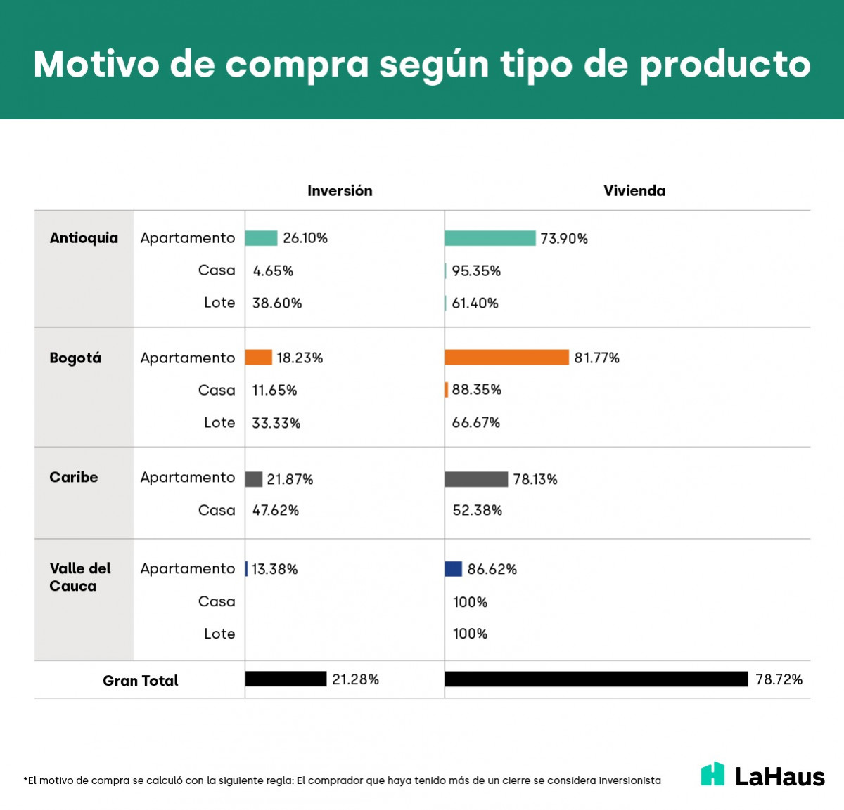 Con base en un análisis de los datos de su plataforma, la proptech colombo-mexicana La Haus reveló la proporción entre viviendas adquiridas con fines de