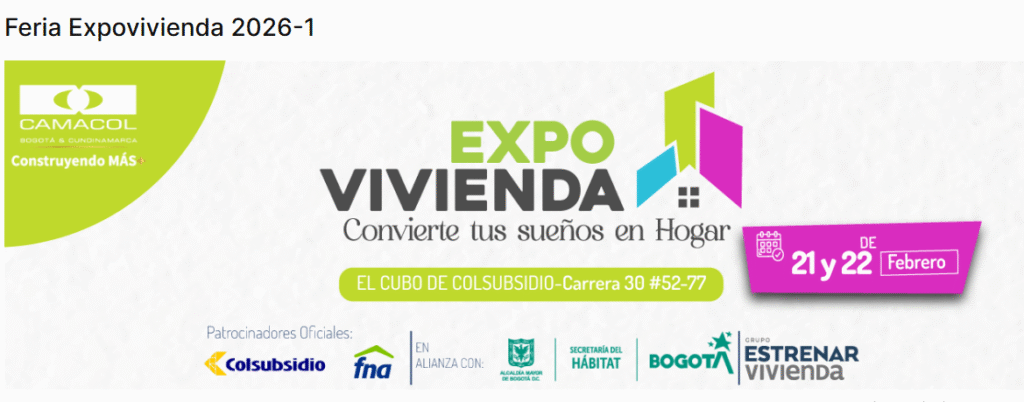 Camacol Bogotá y Cundinamarca los invita a participar el 21 y 22 de febrero a ExpoVivienda evento donde encontrarán proyectos de vivienda nueva, opciones de financiación, créditos y subsidios, con la asesoría directa de constructoras y entidades financieras. Informes e inscripciones en https://www.camacolbyc.co/eventos/expovivienda-2026.html